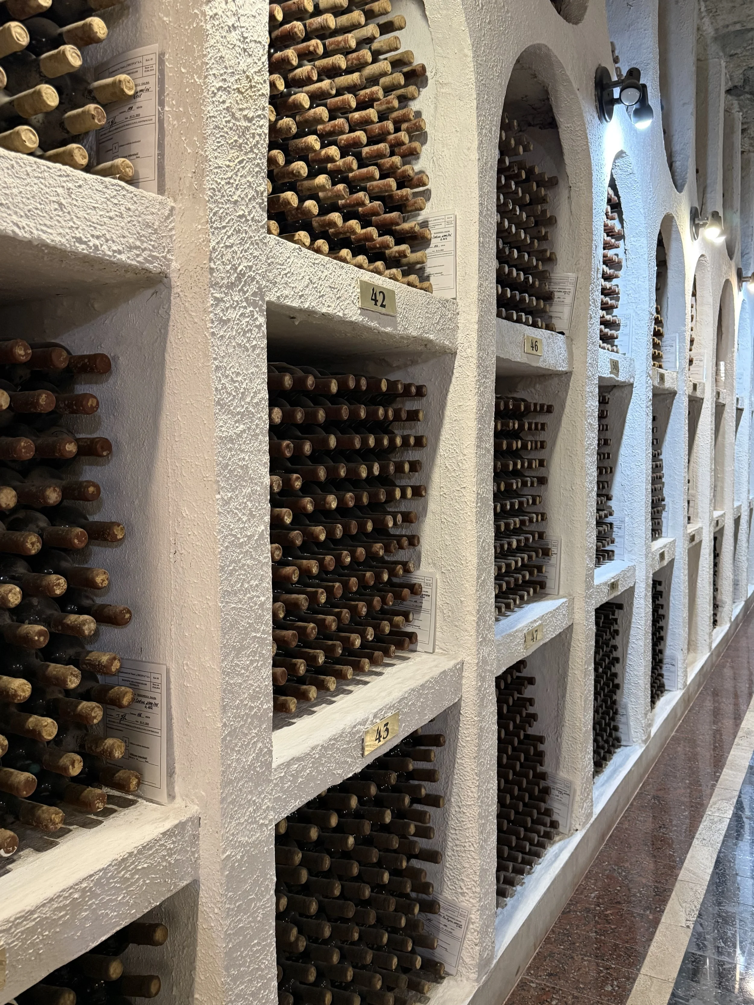 Making use of an old limestone mine’s tunnels, there are 75 miles of underground storage for aging and storing wine